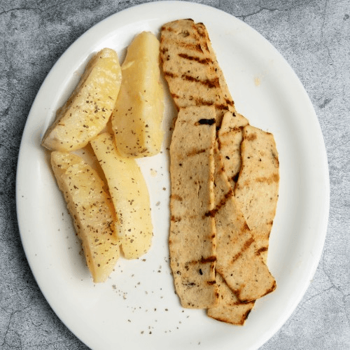 Rotisserie seasoned chicken slices. All entree include either potato vegetable, soup or salad.